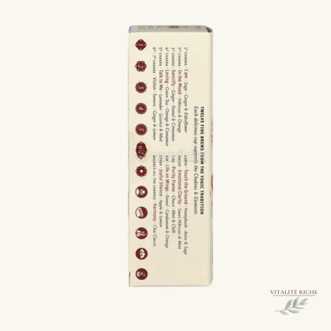 Ce que tu découvres : 7 tisanes Chakras — du 1er au 7ème chakra 5 tisanes Éléments — Terre, Eau, Feu, Air, Éther